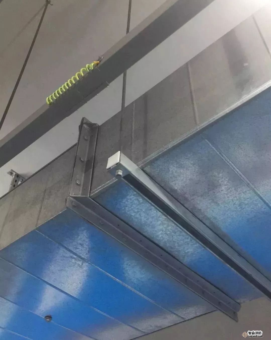 排煙管道安裝,法蘭采用倒角法蘭,美觀實(shí)用,標(biāo)識(shí)清楚。