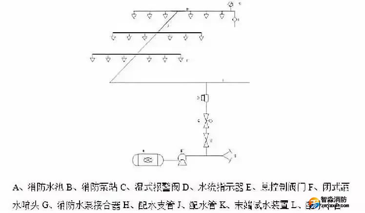 一、自動(dòng)噴水滅火系統(tǒng)由水源、加壓送水設(shè)備、報(bào)警閥、管網(wǎng)、噴頭及火災(zāi)探測器系統(tǒng)等組成。