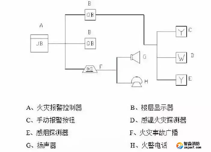 火災(zāi)自動(dòng)報(bào)警系統(tǒng)的基本結(jié)構(gòu)如圖:
