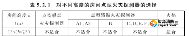 5.2.1 對不同高度的房間,可按表5.2.1選擇點型火災(zāi)探測器。