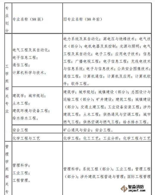 消防工程相關(guān)專業(yè)新舊對(duì)照表
