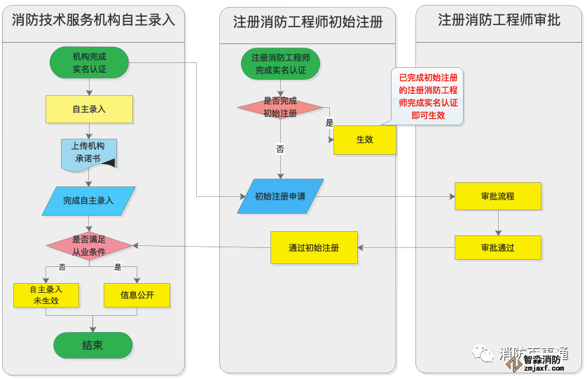 1、尚未注冊執(zhí)業(yè):由該注冊消防工程師按照《注冊消防工程師管理規(guī)定》提交注冊申請材料,取得注冊證書后,由消防技術(shù)服務機構(gòu)錄入注冊消防工程師的基本信息(姓名、身份證號、資格證書編號或資格證書管理)。