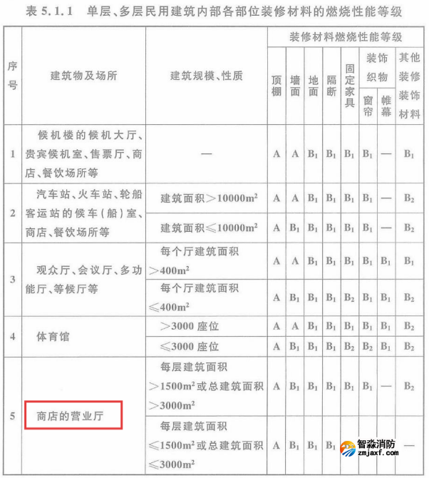 附《建筑內(nèi)部裝修設(shè)計防火規(guī)范》GB 50222-2017有關(guān)商店建筑裝修材料燃燒性能標(biāo)準(zhǔn)要求: