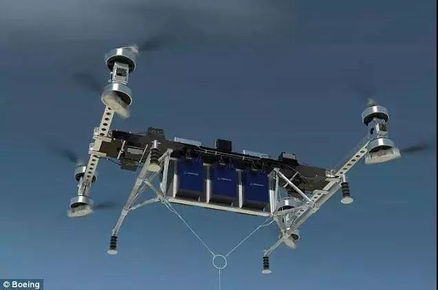 這架無人機可以承載兩頭小象的重量。這艘飛機重達339公斤(747磅),但還能攜帶226公斤(500磅)的貨物。波音公司表示,它可能會利用無人機在未來轉(zhuǎn)移重型貨物。這個身形矯健的無人機長4.6米(15英尺),寬5.5米(18英尺),高1.2米(4英尺)。從圖中可以看出,它有8個跟直升機一樣的旋翼,可以垂直起降。它是由電力推進系統(tǒng)驅(qū)動的。需要運輸?shù)呢浳铮梢杂秒娎|連接到無人機上。