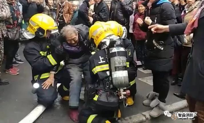 2018年1月5日中午,普陀區(qū)一民宅室內(nèi)發(fā)生火災(zāi)。消防戰(zhàn)士趕到時獲悉,在滅火救援期間,一名90高齡的老奶奶被消防員背出火場,狂奔大約有400米左右。到了弄堂口,兩名消防員以腿做凳,供老人休息。