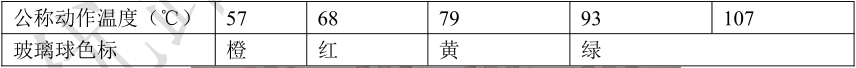 4)易熔元件、玻璃球的色標(biāo)與溫度的對(duì)應(yīng)關(guān)系。