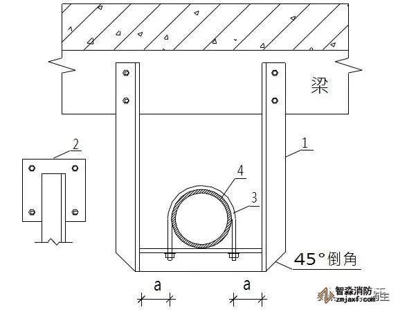 1.角鋼 2.連接板(6mm) 3.管碼 4.管道