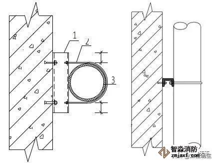 1.角鋼 2.連接板(10mm,做為承重支架,當(dāng)使用80以上的角鋼時(shí)采用) 3.管碼 4.管道