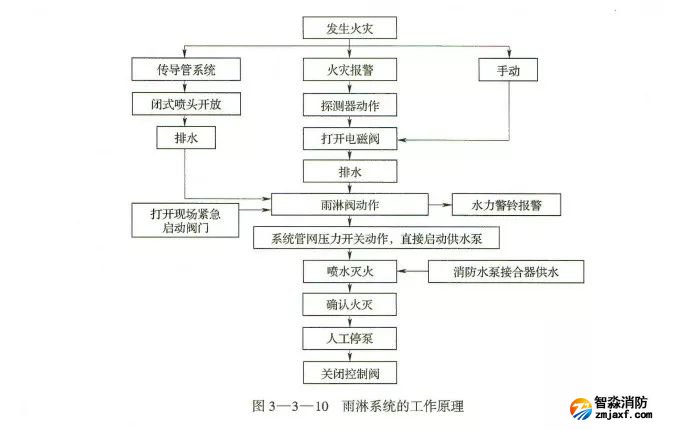 組成:火災(zāi)探測(cè)傳動(dòng)控制系統(tǒng)、自動(dòng)控制成組作用閥門(mén)系統(tǒng)、帶開(kāi)式噴頭的自動(dòng)噴水滅火系統(tǒng)。