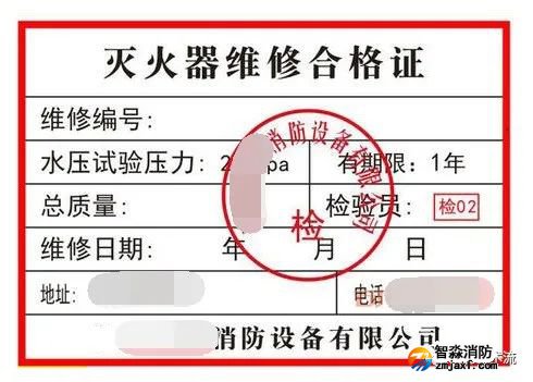 根據(jù)相關(guān)規(guī)范要求,滅火器達到維修條件經(jīng)過維修后,每具經(jīng)維修出廠檢驗合格的滅火器應(yīng)加貼維修合格證。維修合格證的內(nèi)容應(yīng)包括: